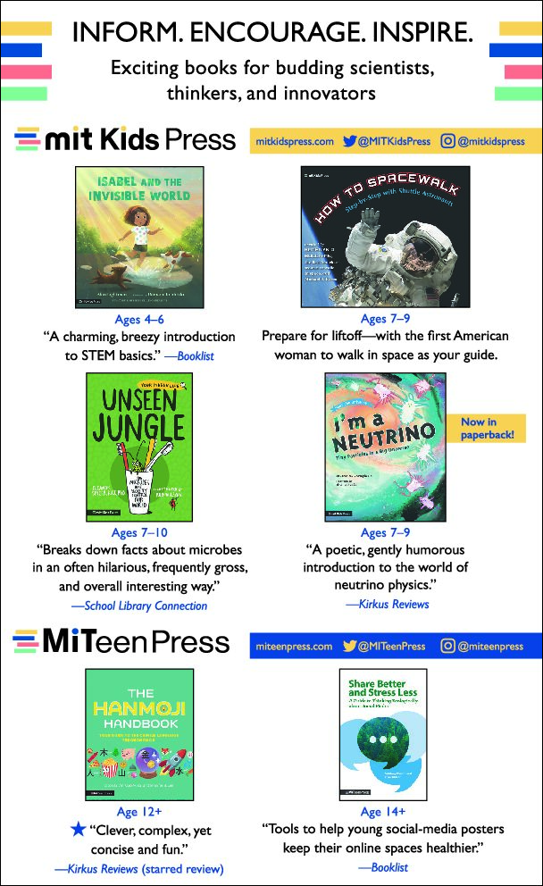 MIT Kids Press – Lively, fascinating, and far-reaching writing on STEAM topics for young people, offering ambitious and engaging books for the next generation of budding thinkers, designers, scientists, leaders, and inventors.
