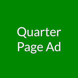 Quarter page ad includes color, no bleed. Ad Dimensions: 4.75″ Width by 1.875″ High.
